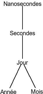 Ce résultat n'a été obtenu que tardivement dans l'histoire (à cause de la difficulté des calculs), et est l'une des raisons du passage du calendrier julien ou calendrier grégorien. Chaque jour possède une écriture unique, de la forme "Jour/Mois/Année" : cette écriture se nomme une date. Ce même jour peut être découpé en plusieurs unités de temps, donc celle qui nous sera la plus utile est la seconde. Une seconde est une unité de temps, représentant un 86400ème d'un jour terrestre. Nous pouvons aussi la diviser en d'autres unités plus précises : milliseconde, nanoseconde... Dans le code, nous pouvons obtenir un nombre de nanosecondes, correspondant aux nombres de nanosecondes depuis 1970. Tout l'algorithme reposera la dessus. Via ce nombre, on peut donc obtenir le nombre de secondes, de jours... Via le nombre de jours, on peut obtenir le nombre d'années, de mois... Comme ce nombre est relatif à 1970, nous allons devoir y ajouter quelques modifications mathématiques pour obtenir le bon résultat.