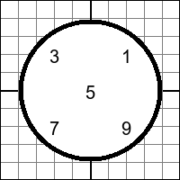 Ici, un ensemble est un objet mathématique qui peut "contenir" d'autres objets (on dit que ces objets appartiennent à l'ensemble). Une façon intéressante d'en représenter un peut être la suivante (ici, l'ensemble des nombres impairs entre 0 et 10) :