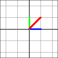 Nous pouvons faire la même chose avec tous les vecteurs possibles. Par exemple, prenons le vecteur "(1, 0)" : nous pouvons engendre "(3, 0)", "(pi, 0)" ou "(-0.000000000001, 0)". Ici, nous pouvons obtenir une combinaison linéaire de nos deux vecteurs d'exemple : "(1, 1)" et "(1, 0)". Nous obtenons donc une combinaison linéaire de la forme "a * (1, 1) + b * (1, 0)" avec "a" et "b" des nombres réels quelconques. Ici, on peut se poser une question : quel est l'ensemble précis des vecteurs calculables via cette combinaison linéaire? Quelques exemples peuvent s'obtenir en remplaçant "a" et "b" par des valeurs connues.