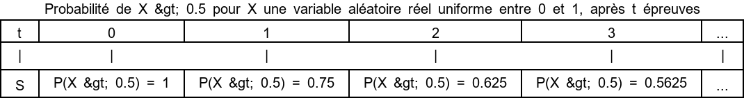 Les lois de probabilités peuvent être modifiées en même temps que les évènements de leur tribu arrivent. L'objet décrivant les variations d'une variable aléatoire dans le temps est nommé un processus aléatoire (ou processus stochastique). Pour décrire cela, nous avons besoin de deux objets spéciaux. Premièrement, nous allons définir un ensemble "S" de valeurs correspondant à toutes les valeurs possibles de la variable aléatoire étudiée. Pour être précis, nous n'étudions pas qu'une seule variable aléatoire, mais une famille, définie dans "S". Cet ensemble contenant toutes les valeurs possibles de la famille de variables aléatoires étudiées est nommé ensemble d'état. En suite, nous allons indexer ces variables, avec des valeurs définies dans un autre ensemble "T", nommé ensemble d'indice. En toute logique, il y'a équipotence entre ces deux ensembles.