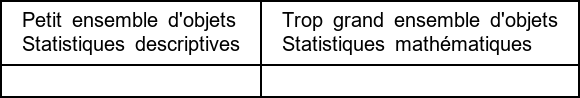Bien qu'elles représentent une branche des mathématiques, cette discipline apparait dans plein de concepts différents. Par exemple, elle est utilisée en démographie pour recenser / sonder la population d'un pays / région / tout ce que vous voulez. En mathématiques, elle est représentée de façon abstraite, pour coller à tous les domaines possibles. Elle englobe donc une grande quantité de sous-domaines différents, propre à des applications plus précises. En général, la part des statistiques permettant de représenter complétement un ensemble de données est nommée "statistiques descriptives" (ou "analyse des données"). Dans ce cas, il est judicieux d'analyse l'entiereté de l'ensemble, pour avoir les résultats les plus réalistes possibles. Cependant, dans certains cas, étudier l'entiereté de l'ensemble est impossible. Si nous ne pouvons pas étudier tout l'ensemble, alors nous allons étudier une partie de cet ensemble (nommé un échantillon), et utiliser d'autres outils statistiques pour en déduire les paramètres de l'ensemble : il s'agit des statistiques mathématiques. Cette branches des statistiques est très liée à la branche mathématiques des probabilités.